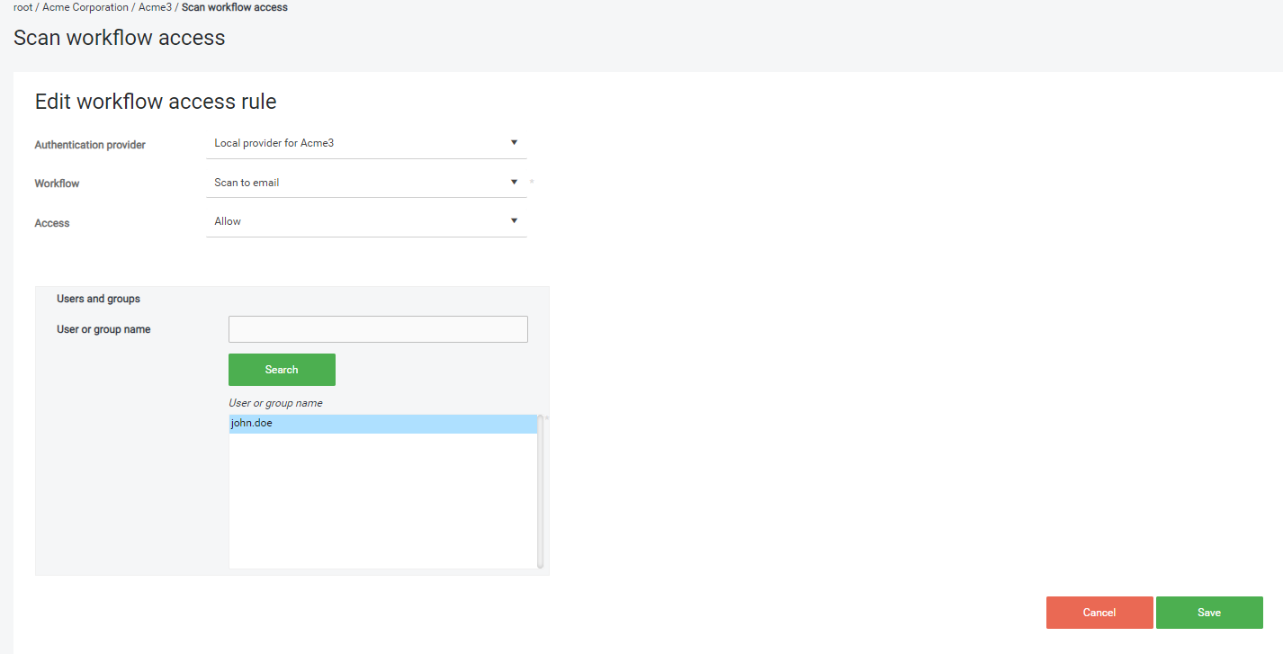 Access to each individual workflow can be configured via rules on a group or user basis: