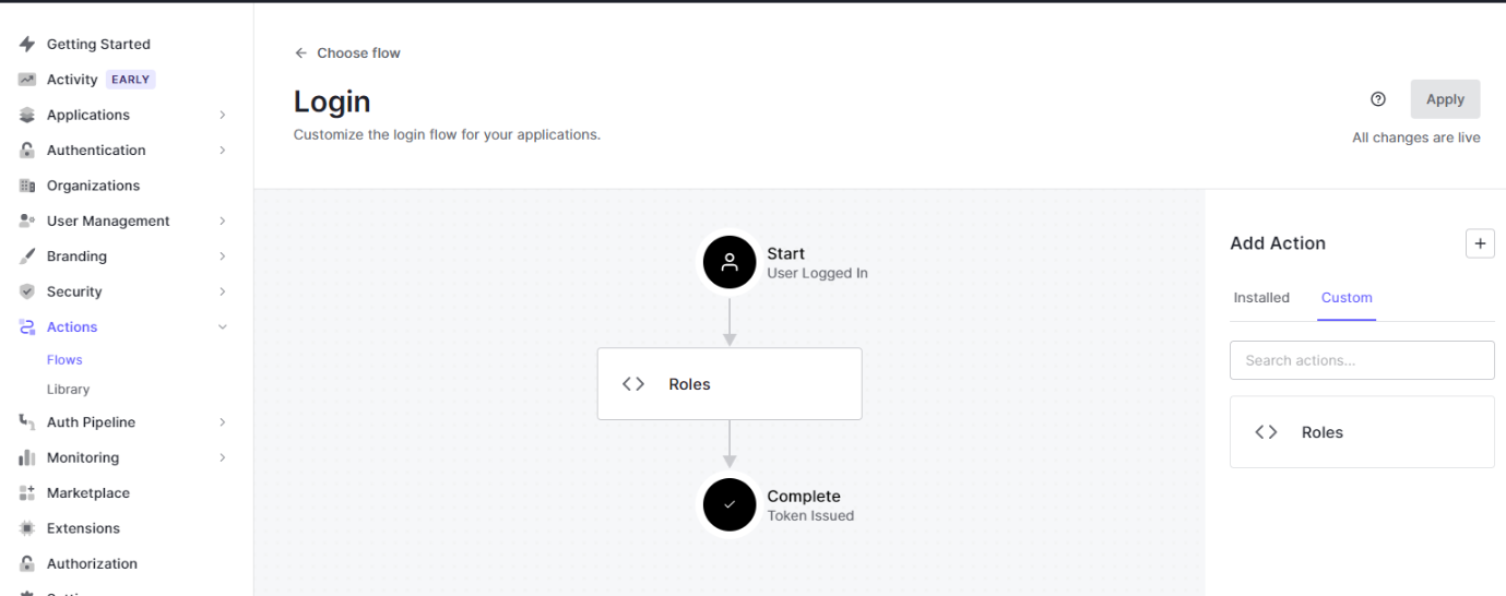 Drag and drop newly created Action to Login flow.