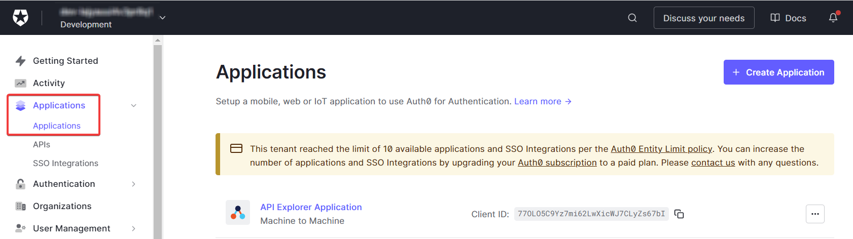 Log in to Auth0 identity platform and go to Applications > Applications.