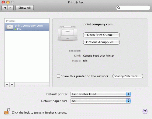 If you are not using the RICOH CloudStream Client for MacOSX, you can print directly from the programs on your computer, by adding an IPP print queue manually. Your administrator must provide you with the print queue address and with information on which print driver to use. When you have this information, perform the following steps: