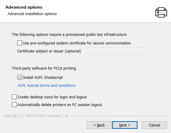 Install AGPL Ghostscript – install AGPL Ghostscript software which is necessary for PCL6 printing.