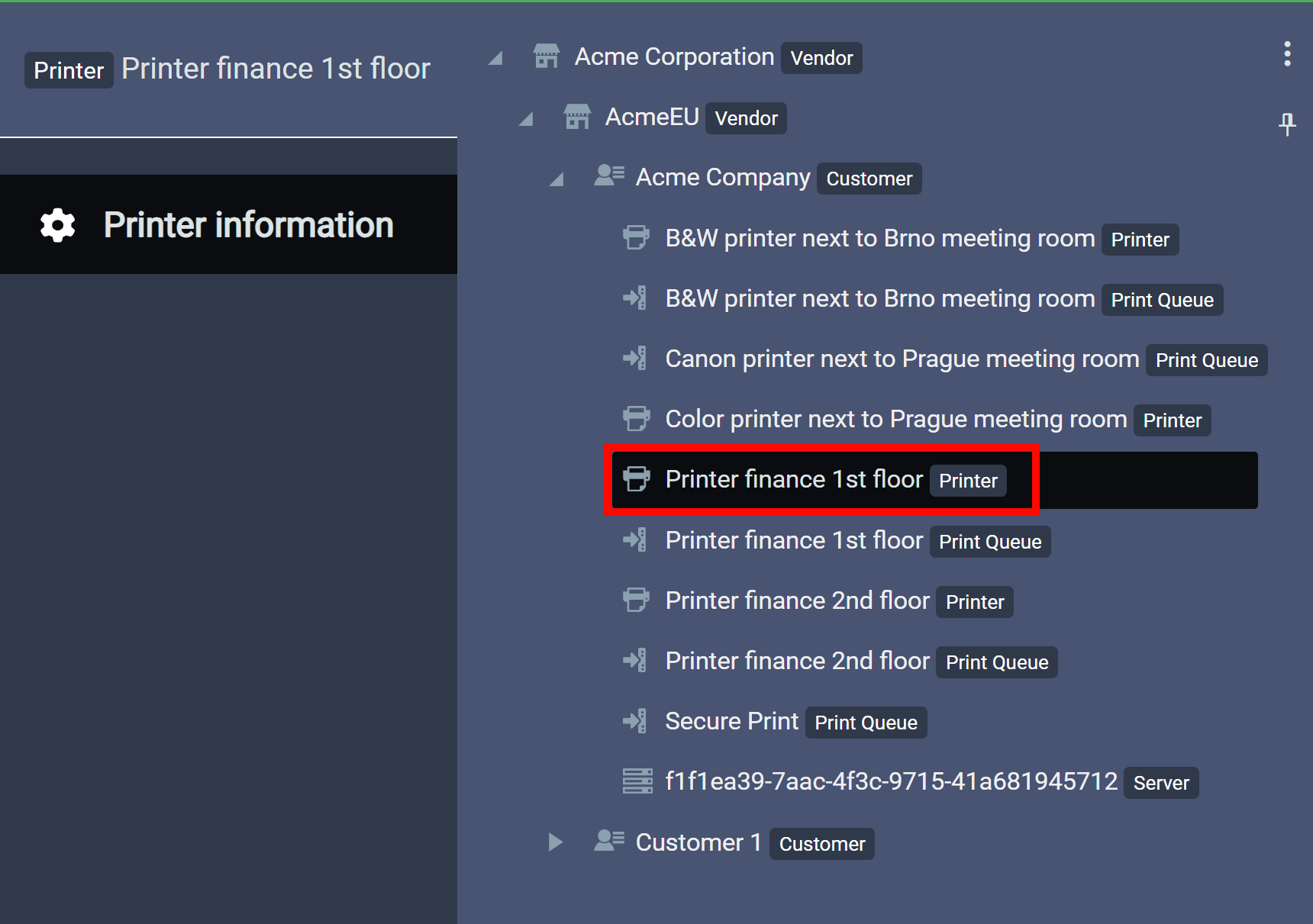 ![]()  | Edit Printer settings  | If you don't have the edit permission, settings are read-only.  |