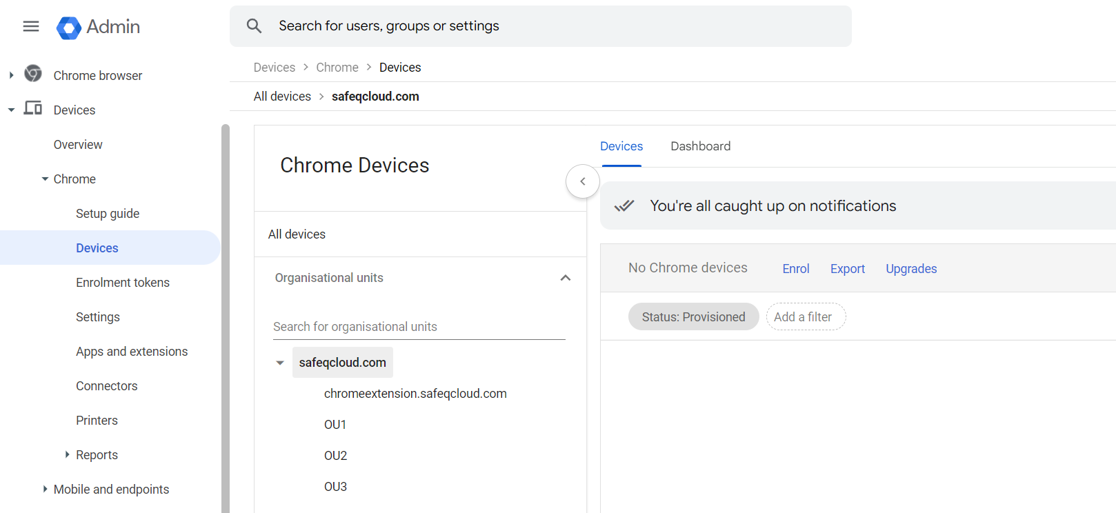 Go to the Devices and check that all required Chromebook devices are enrolled and in Provisioned status.
