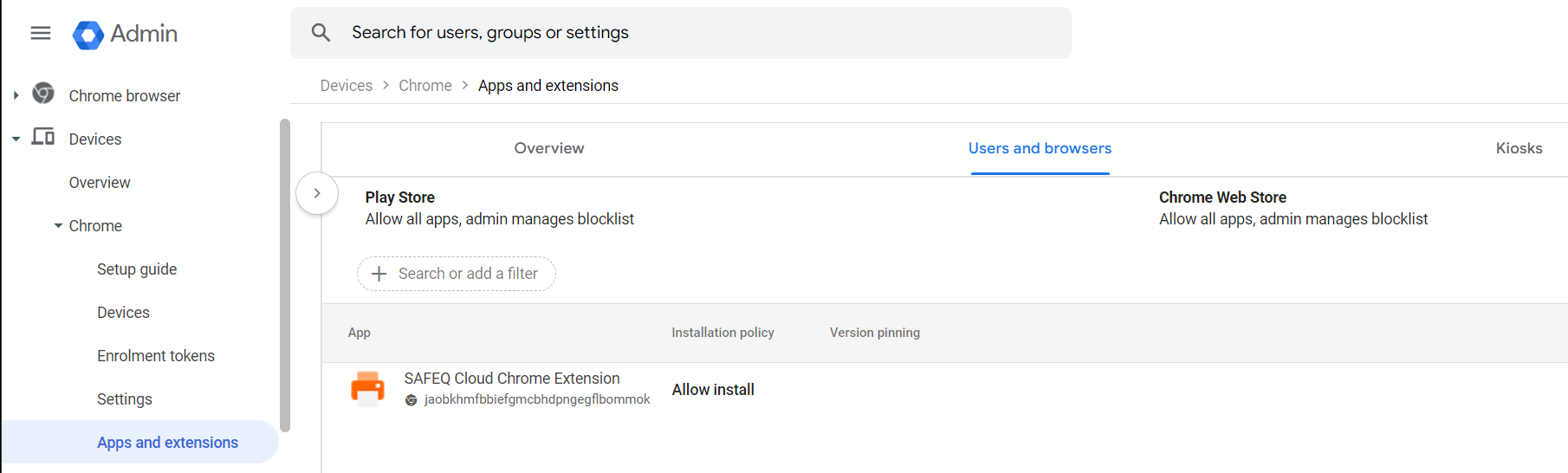 For using the extension, see Using the SAFEQ Cloud Chrome Extension.