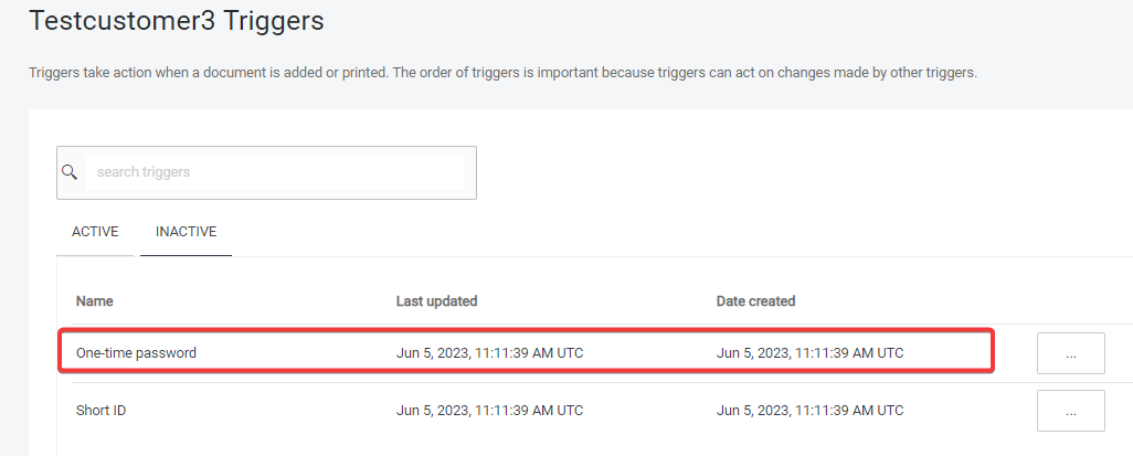 Via a trigger rule. By default, CloudStream Web UI has a One-time password trigger listed under the inactive triggers which generates OTP on a first print job that the user sends to the system and then sends this OTP to the user’s email address. Activate the trigger in order to make it operational.