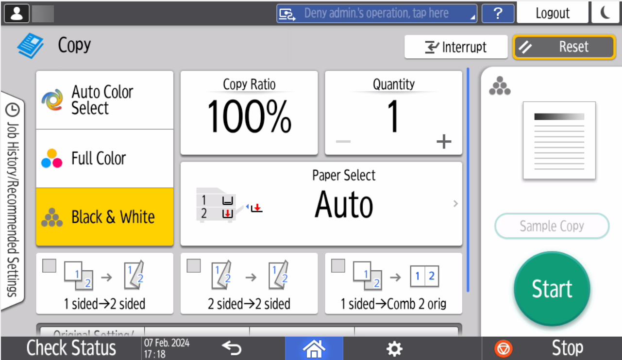 In Quick Copy, you can modify basic copy options. Tap Start to start copying.