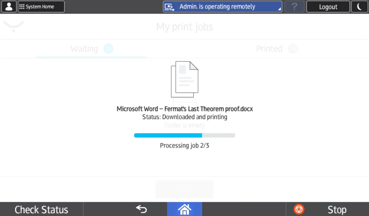 Downloaded and printing – The downloaded job is being printed by Cloud Terminal.