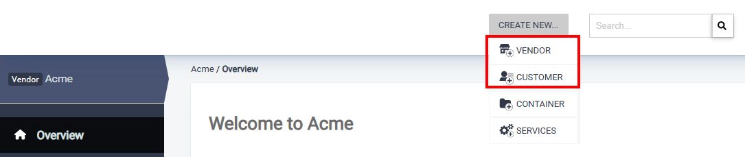 If you wish to add a Vendor account, click Create new and select Vendor.